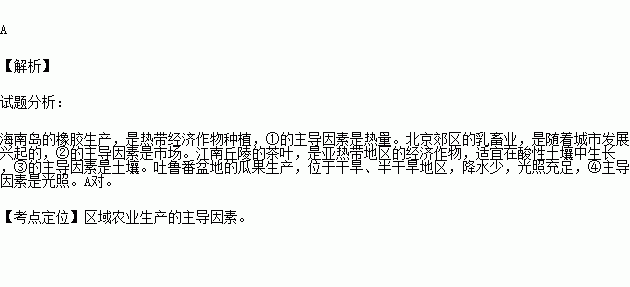 ①海南岛的橡胶生产 ②北京郊区的乳畜业