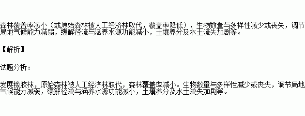 某地热带雨林区,为了经济发展的需要,人们砍伐了大量森林并种植了橡胶等经济作物;从此,该地的生态环境发生了改变。下面两图显示的是该地原貌(左图)与变化后(右图)的景观。