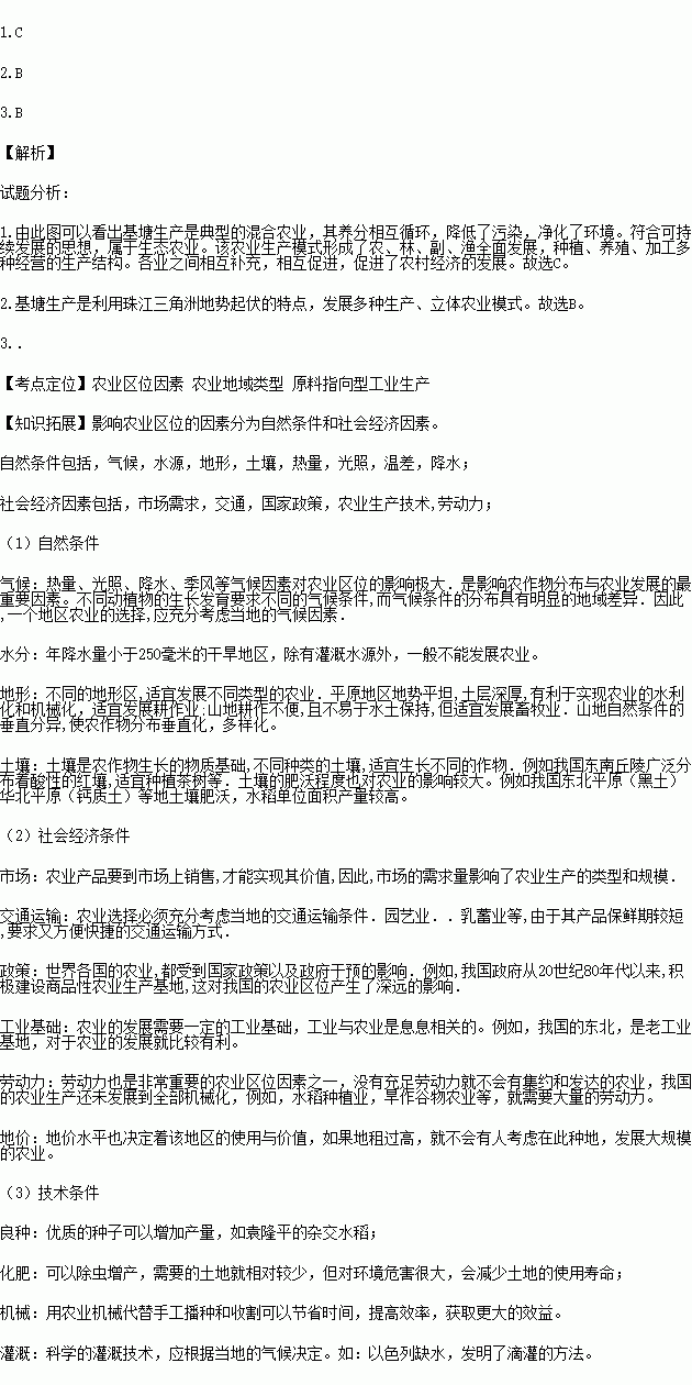 2.基塘生产的特色是充分利用下列哪个区位因素 ( )