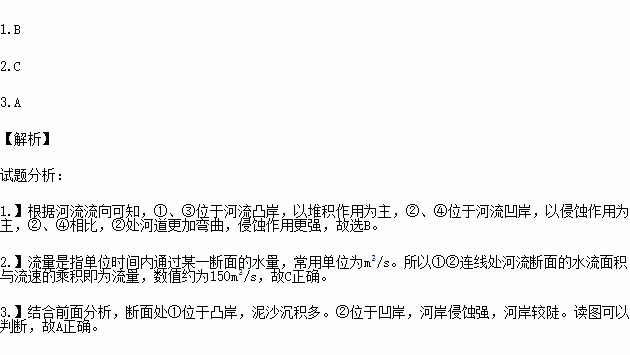 2.若①②连线处河流断面的水流面积为50,流速为3m/s。则该处河流断面的流量为
