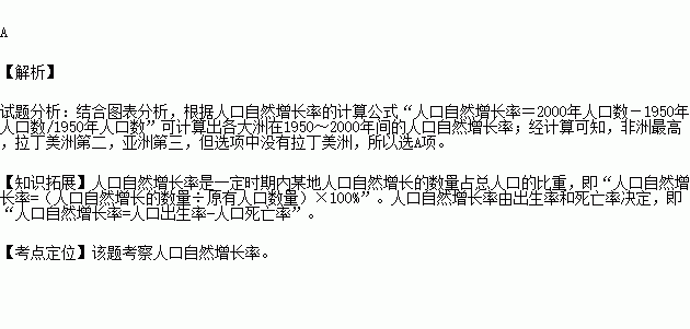 下图中,在1950~2000年间人口自然增长率第二高的大洲是