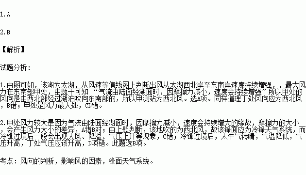 ÆøÁ÷ÓÉÂ½Ãæ¾ºþÃæÊ±£¬ËÙ¶È»á³ÖÐøÔöÇ¿¡£ÏÂͼʾÒâij·æÃæÏµÍ³¹ý¾³ºóµÄ·çËÙµÈÖµÏß·Ö²¼£¨µ¥Î»Ã×/Ã룩״¿ö¡£¶ÁͼÍê³ÉÏÂÁи÷Ìâ¡£