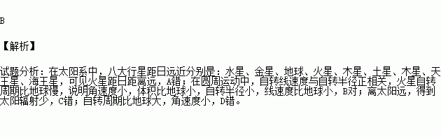 A. 距日较近 B. 自转线速度比地球小