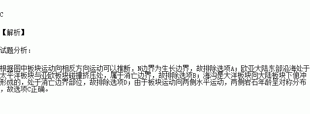 下图是某大洋海底示意图,N为板块的边界,据图回答问题。图中N( )
