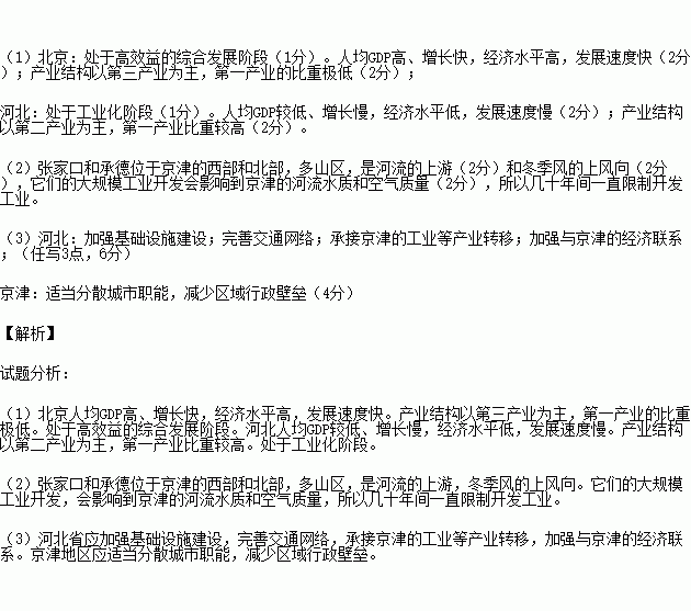 (3)为实现京津冀协同发展,从加强区域联系的角度,说明河北和京津应分别采取的措施。(10分)
