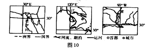 ͼ10Ϊ¡°±±Î³30¡ã¸½½ü²¿·ÖÇøÓòͼ¡±£¬¶Áͼ£¬Íê³É21¡«22Ìâ¡£