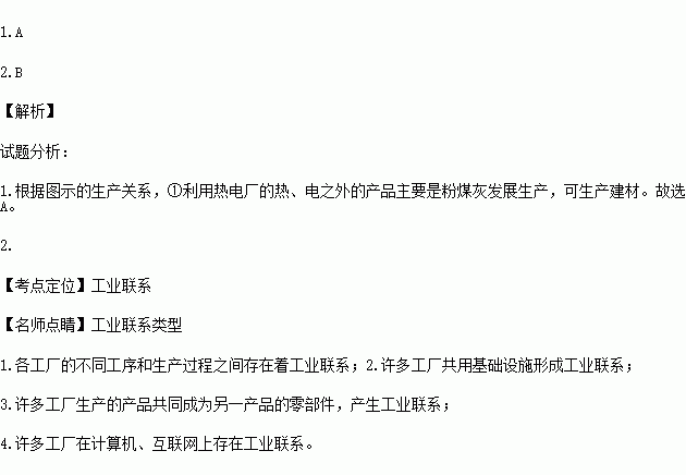 A.粉煤灰、新型建筑材料厂 B.供气、液化气站 C.供水、农田灌溉 D.钢材、轧钢厂