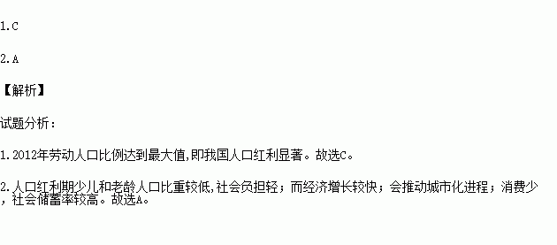 所谓“人口红利”,是指一个国家的劳动年龄人口占总人口比重大,抚养率比较低,为经济发展创造有利的人口条件,整个国家的经济形成高储蓄、高投资和高增长的局面。读我国的人口红利图,回答下列问题。