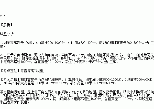 1.山顶A与C地的相对高度可能是( )