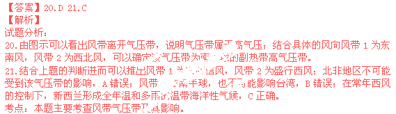 | A.风带1为东北信风带 | B.风带1为盛行西风带 |