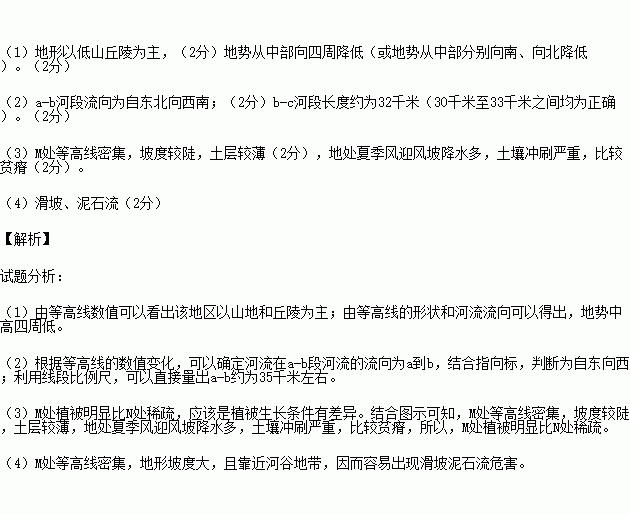 (3)在考察过程中同学们发现M处植被明显比N处稀疏,其可能的原因是什么?(4分)