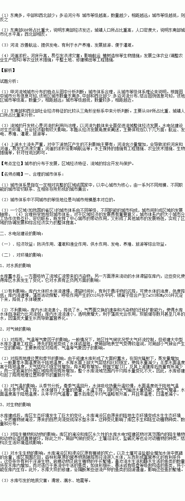 (1)甲河流域城市分布的特点是__________________________________________________;