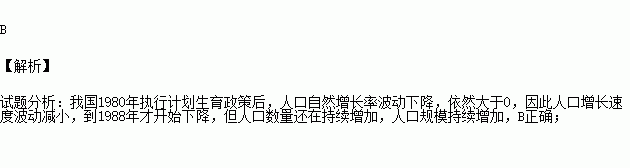 1980年我国开始执行一对夫妇只能生育一胎的计划生育政策,2013年启动实施一方是独生子女的夫妇可生育两个孩子的政策。下图是1978年以来我国人口自然增长变化图和我国未来基于不同生育政策的出生人口规模预测图。1980年我国执行计划生育政策后( )