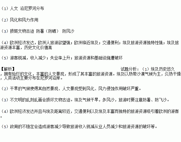 (4)简述欧洲成为埃及旅游业主要客源地的原因。