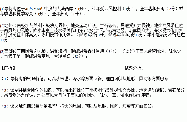 (1)试推测蒙特港的气候特征。