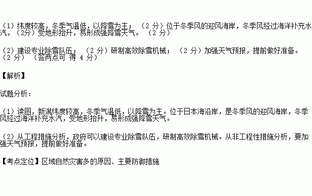 (1)分析新潟雪灾最多的原因。