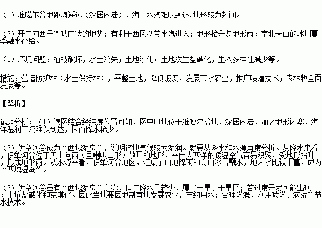 (2)结合右图简要分析伊犁河谷成为“西域湿岛”的原因。