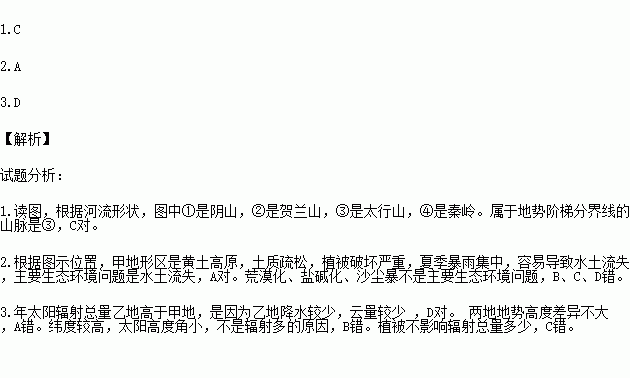 3.年太阳辐射总量乙地高于甲地,是因为乙地