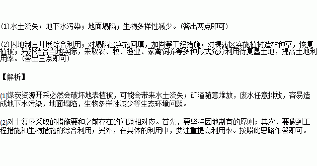 (1)简述煤炭资源开采中可能带来的生态环境问题。