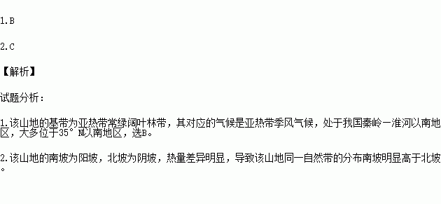 1.根据该山地的垂直自然带谱判断,该山地的地理纬度可能是( )