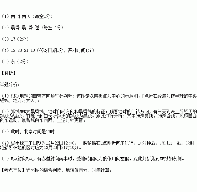 (1)该图是以________极点为中心的示意图,P点地方时为________时。