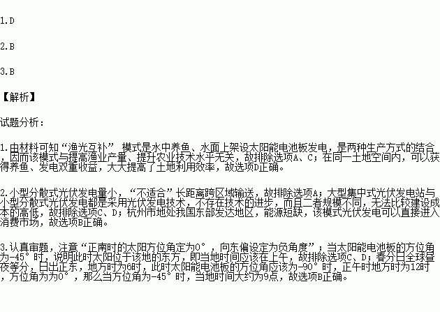 2.将电池板朝正南时的太阳方位角定为0°,向东偏设定为负角度,向西偏设定为正角度。春分日,该产业园太阳能电池板的方位角为-45°,则当地时间大约为( )