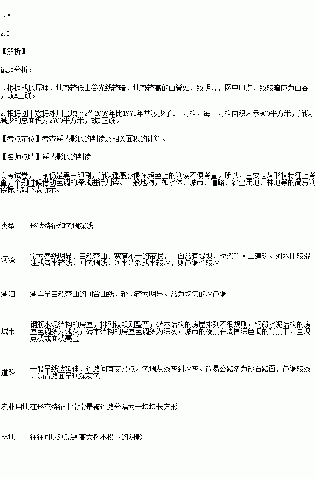 ÏÂͼΪij±ù´¨ËùÔÚÇøÓòÒ£¸ÐÓ°Ïñ£¬ÏÂͼΪ¸ù¾Ý1973 ¡¢2009ÄêÒ£¸ÐÓ°ÏñÌáÈ¡µÄ¸Ã±ù´¨·Ö²¼Í¼²ã£¨¾Ö²¿£©£¬Í¼ÖÐÿ¸ö·½¸ñÃæ»ý±íʾ900ƽ·½Ãס£¶Áͼ»Ø´ð¸÷Ìâ¡£