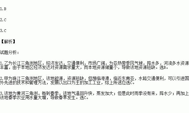 Èý½ÇÖÞµØÇøÊÇÎÒ¹ú¶«²¿µØÇø¹¤Å©Òµ·¢´ïµØÇø¡£Í¼¼×¡¢ÒÒ¡¢±ûΪÎÒ¹úÈý´óÈý½ÇÖÞµØÇø¡£¶Áͼ»Ø´ðÏÂÁÐÎÊÌâ¡£