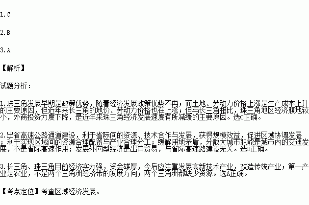 1.与长三角相比,近年来珠三角地区经济发展速度有所减缓的主要原因是