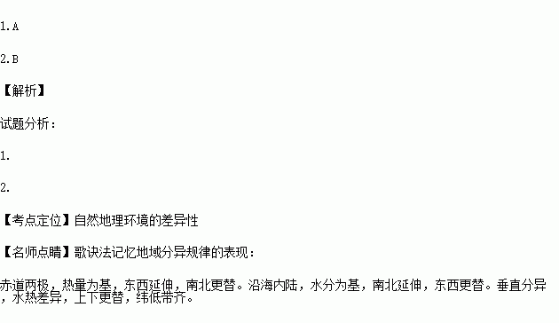1.自然带①→②→③→④→⑤→⑥和自然带⑦→⑧→⑨→⑩的分布规律分别符合( )
