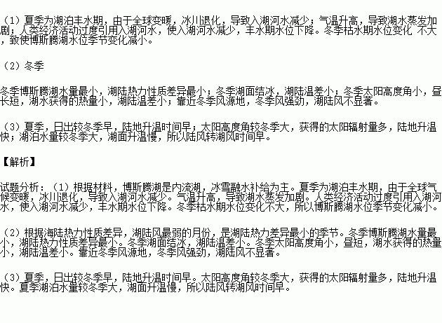 (1)结合材料一,分析博斯腾湖水位季节变化减小的原因。