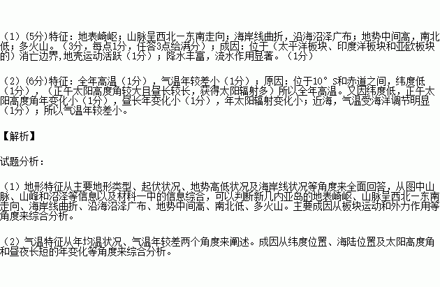 (1)简述新几内亚岛的地形特征及其主要成因。