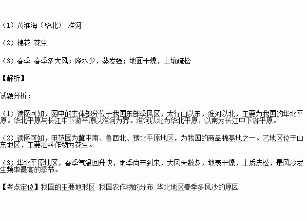 (2)图示甲范围是我国重要的商品性农作物 的生产基地。乙地的油料作物主要是 。