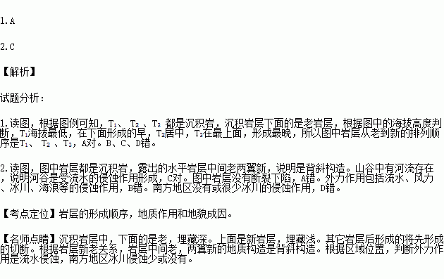 1.图中岩层从老到新的排列顺序是( )