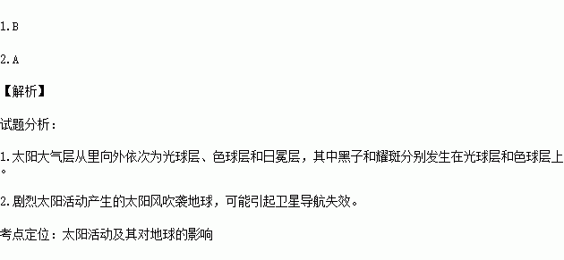 1.图示最主要太阳活动发生在太阳大气层的 ( )