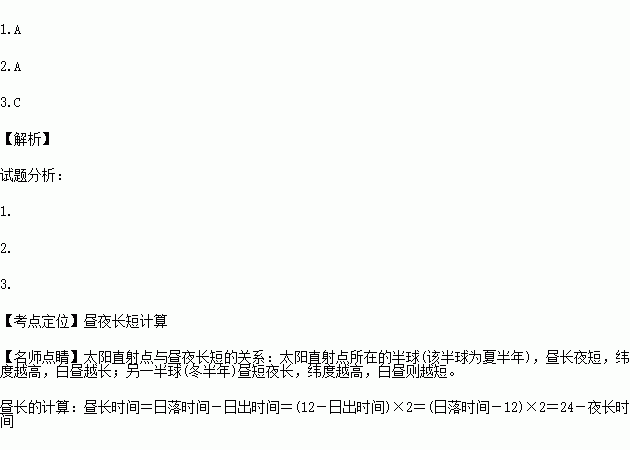 1.请比较表中六个城市白昼的长短,其中两个城市之间白昼时间差值最大可达( )