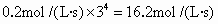 由 20℃升温到60℃,增加了4个10℃,因此60℃时的反应速率应为20℃时反应速率的