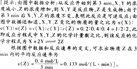 某温度下,在2 L密闭容器中,X、Y、Z三种物质的浓度随时间变化的曲线如图所示.由图中数据分析,该反应的化学方程式为________,反应开始至第3 min,Z的平均反应速率为________.