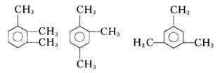 则 该烃分子式C9H12符合通式CnH2n―6,是苯的同系物.其同分异构体有: ①有一个侧链 ②有两个侧链 ③有三个侧链 该烃在铁催化下,与溴发生取代反应,一溴代物只有一种,说明苯环上只有一种等效H. ∴ 该烃为