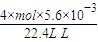 22.4L 4mol