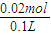 =0.02mol£¬ËùÒÔÈÜÒºµÄŨ¶ÈΪ£º