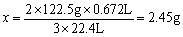 甲实验所剩混合物中有2.45gKClO3,0.1gMnO2,1.49gKCl。设甲实验时分解KClO3质量(g)为y 2KClO3