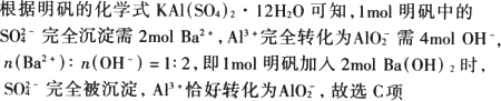把Ba(OH)2溶液滴入明矾溶液中,使SO42-全部转化成BaSO4沉淀,此时铝元素的主要存在形式是( )