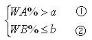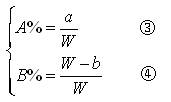 取w g A、B混合物溶于100 g热水中,再冷却至10℃,若要使A析出而B不析出,下列情况下,混合物中A的百分含量应满足什么关系式。