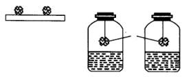 如下图所示:两个广口瓶中分别装有浓盐酸和浓氨水,塞上挂有大颗粒活性炭的橡皮塞.浓盐酸和浓氨水的液面距活性炭1~2厘米,将广口瓶放置约半小时后,从广口瓶中取出活性炭,把它们放在一块玻璃片上,相距1~2厘米.![]()