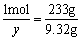 x=0.1mol, c( Na2SO4 ~ BaSO4 1mol 233g y 9.32g
