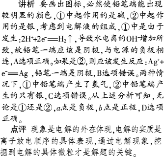 2010年的上海世博会还未正式开始,网上的世博会已如火如荼.某同学想用铅笔在滤纸上画下网上世博会的图标(如图所示).滤纸分别用①硫酸钠、无色酚酞的混合液;②硝酸银溶液浸湿,然后平铺在一块铂片上,接通电源.据此,下列叙述不正确的是