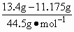 将KCl和KBr的混合物13.4 g溶于水配成500 mL溶液,通入过量的Cl2.反应后将溶液蒸干,得固体11.175 g,则原溶液中K+、Cl-、Br-的物质的量之比是 | |