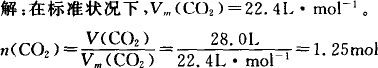 答:标准状况下28.0 L CO2气体的物质的量为1.25 mol. |