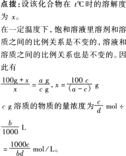 在t℃时,a g某化合物饱和溶液的体积为b mL.将其蒸干后得到c g摩尔质量为d g/mol的不含结晶水的固体物质.此物质在t℃时的溶解度是________;在t℃时此化合物的饱和溶液中溶质的物质的量浓度是________.